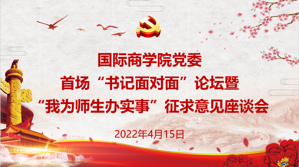 为深入推动“迎盛会、铸忠诚、强担当、创业绩”主题学习宣传教育实践活动,更好开展“我为群众办实事”实践活动,国际商学院党委于4月15日线上召开首场“书记面对面”论坛暨“我为师生办实事”征求意见座谈会。学院党委书记杨颖、专职组织员任前及来自10个本科学生党支部和3个研究生党支部的学生党员代表参加了座谈会。会上,学生党员代表结合前期向周围同学调研的情况,充分反馈了需求诉求,发表了意见建议,涉及提升教育教学环境、改善食宿生活条件、建立意见反馈渠道、规范实习实践管理、优化奖助制度等同学们密切关注的事项内容。杨颖对同学们的发言一一详细了解,并就学生关注的实习实践学分政策,学校软硬件条件改善等情况作出解释回应。会后,学院党委将收集到的群众诉求、问题反映和意见建议归纳整理、登记造册,持续跟进,做到销账管理。2022年,国际商学院党委将通过定期开展“书记面对面”论坛、发放调查问卷、设置意见邮箱等多途径完善意见征求反馈的平台和渠道,持续务实推进“我为师生办实事”实践活动有关工作的开展,并确保事事有回音、件件有着落,以实际行动和发展实绩喜迎党的二十大胜利召开。(通讯员:任前 内容审核:暴士蕊 窦文彤 杨颖