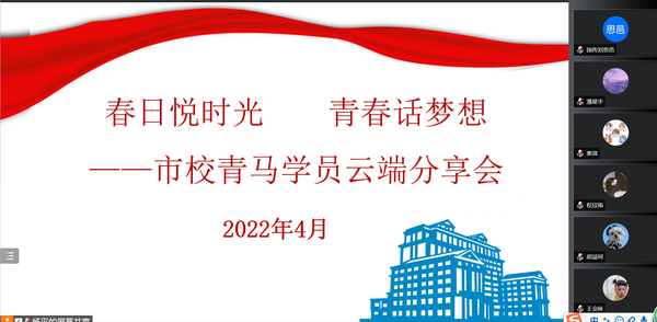青马学员分享成长经历校党委副书记胡志刚分享活动感受校党委书记殷奇以老党员身份分享基层工作经验4月14日,我校组织开展“春日悦时光,青春话梦想”市校青马学员云端分享会。校党委书记殷奇,校党委副书记胡志刚,我校第四期、第五期市青马学员和全体校青马学员70余人心贴心倾诉与分享青马成长和基层实践体会,“云端会议”气氛热烈。第四期市青马学员、欧洲语言文化学院曹惠阳以“心有所信,方能行远”,国际传媒学院王鹏翔以“用热爱照亮理想之光”为题分享了自己的青马成长经历,从校青马到市青马再到成功通过天津市2022年度定向选调生招录考试,成为一名光荣的基层工作者,她们炽热的信念、坚定的信仰,不惧苦难、无畏拼搏的精神深深打动了与会师生。第五期市青马学员、国际商学院刘鸿飞以“青风不止,马不停蹄------我在选择青马时的考虑”,国际商学院洪颖以“在试炼中成长”,国际传媒学院潘星宇以“穷理以致其知,反躬以践其实”,国际教育学院聂博宇以“不负韶华,勇敢追梦”为题分享了自己在青马中的蜕变成长,特别是寒假期间他们在基层实践中的所感所思所想,进一步坚定了他们到基层去,到祖国需要的地方去建功立业的信心和勇气。提问互动环节,校