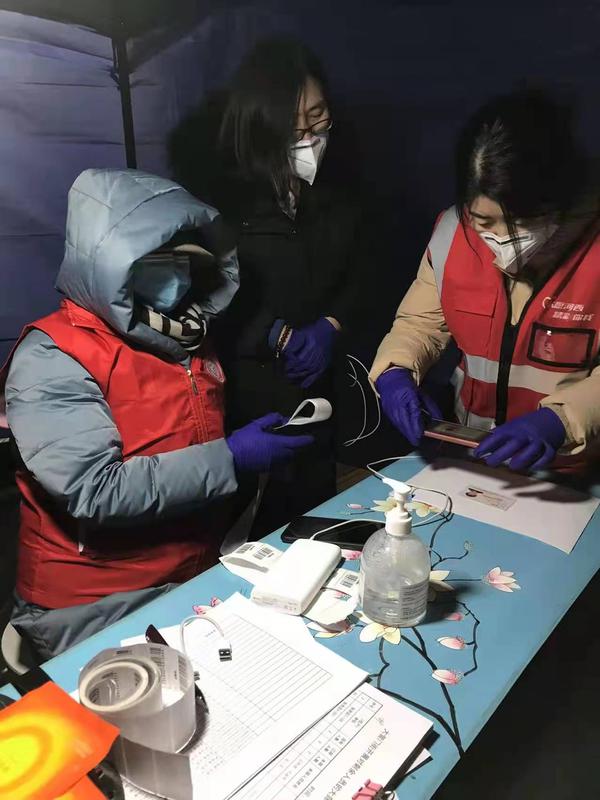 马克思主义学院教师于海霞、亚非语学院教师骆元媛,也不约而同报名了社区防疫志愿者,她们被分配到一组负责信息登记工作。由于需要使用专门的APP,她们认真学习操作流程,反复模拟练习,确保信息录入无误。随着工作深入,两人配合越来越默契,扫开箱码、扫试管码、扫身份证、封管、封箱一气呵成,长时间的志愿服务让现场群众非常感动,为她们送来暖宝宝和热水。