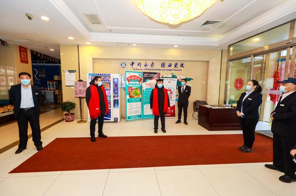 校领导先后来到校门口、逸夫楼、国际交流中心和学校值班室,向站岗执勤、巡逻防控的保卫人员,向后勤服务、运维保障的物业人员,向留学生管理服务、行政值班值守的教职员工致以春节的诚挚问候。校领导与在岗同志亲切交谈,了解各岗位运行情况,询问在岗人员假期工作、生活情况,对他们“舍小家为大家”,春节期间依然坚守岗位表示感谢,希望大家不放松、不懈怠,协调好工作生活,确保假期校园安全稳定,祝福大家新春愉快,虎年大吉,并为他们送上福字和慰问品。
