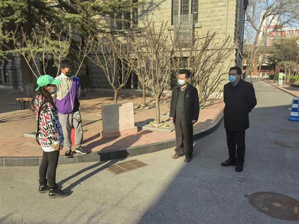 为落实好4月2日市教育两委疫情防控工作调度会会议精神,确保在校师生安全健康,2日下午,校疫情防控指挥部指挥长、校党委书记殷奇,校长陈法春带队深入马场道校区隔离点、食堂、超市、校门等重点领域、重点场所进行检查,并慰问在校学生。