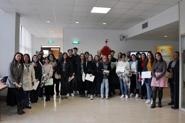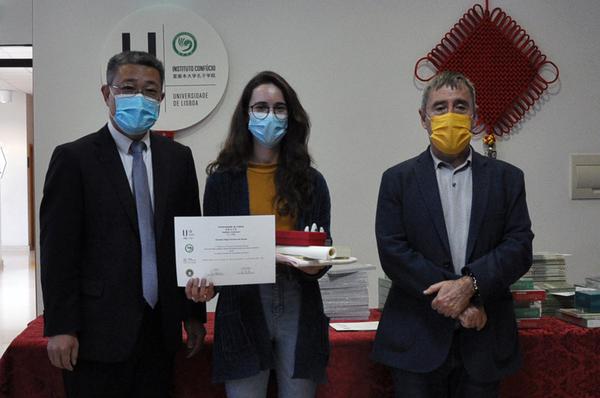 为庆祝2022年“国际中文日”,里斯本大学孔子学院于当地时间4月21日举办了第一届“我爱学中文”汉字书写比赛和第二届《我学习汉语的故事》中文写作比赛颁奖活动。来自里斯本大学文学院、孔子学院社会班以及圣托马斯孔子课堂的68名学生提交了参赛作品。经过严格评审,中文写作比赛共评出一等奖1名,二等奖2名,三等奖4名。汉字书写比赛分为两组,成年组共评出一等奖3名、二等奖4名、三等奖6名;少年组评出一等奖2名、二等奖3名、三等奖5名。孔子学院中方院长和葡方院长为获奖学生颁发了证书和奖品。