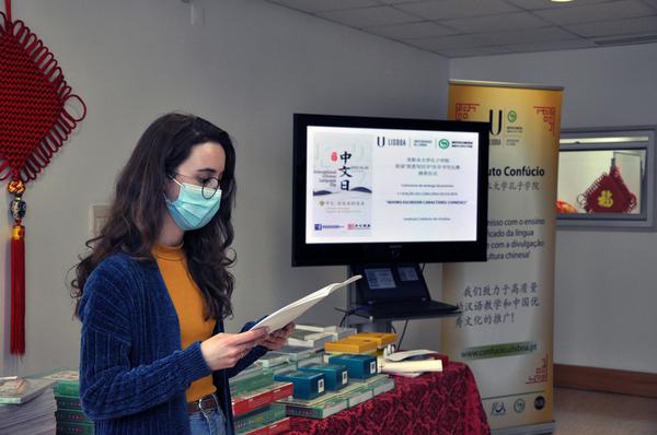 获得中文写作比赛一等奖的文学院学生丹妮(Daniela Sousa) 朗读了自己的参赛作品,与大家分享了她学习中文的经历。她表示,学中文不仅仅是学习一门外语,更是一种了解中国人和中国文化的方式。中文是一门艺术,掌握了中文让她如获至宝。获得汉字书写比赛一等奖的社会班学员聂凯(Carlos Nunes) 表示,他从小就向往东方,很想学习中国语言文化,是孔子学院帮助他实现了自己的愿望。获得写作比赛二等奖的文学院学生何梦迪(Matilde Ho)是中葡混血儿,从小缺乏对文化的归属感。在大学学习中文以后,随着对中国文化的了解,逐渐找到了自己的归属感,这次比赛让她对中国文化有了进一步的理解和认同。
