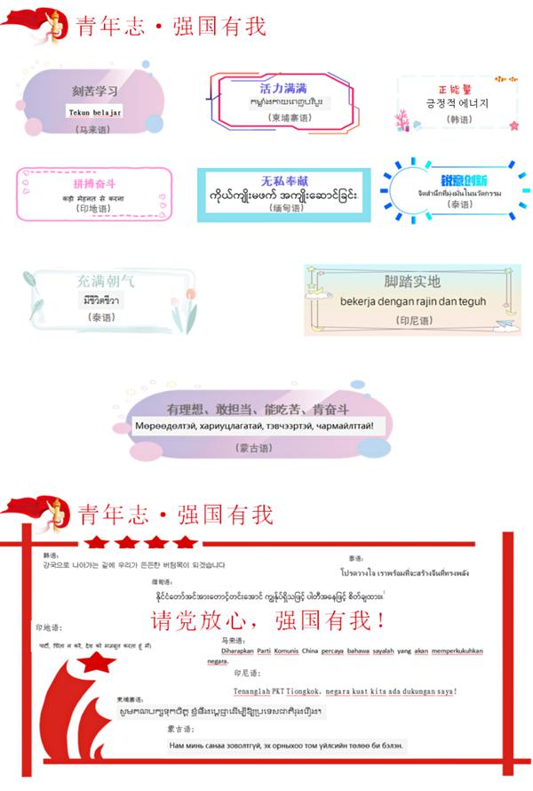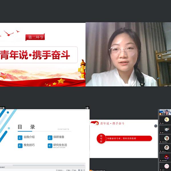 青年一代必将大有可为,也必将大有作为。与会同学们深受鼓舞,畅谈青春梦想,并用所学专业对青春梦想进行翻译,共同向党许下青春的誓言:请党放心,强国有我!