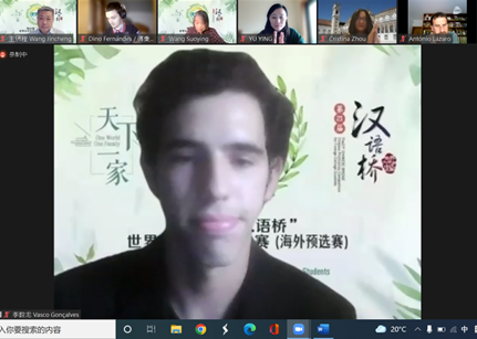 本次比赛由中国驻葡萄牙大使馆主办、科英布拉大学孔子学院承办,主题为“天下一家”。中国驻葡萄牙大使馆大使赵本堂、教育组负责人陈默、全葡5所孔子学院的中外方院长、在葡公派汉语教师和志愿者以及社会各界人士近百人出席了此次线上比赛。