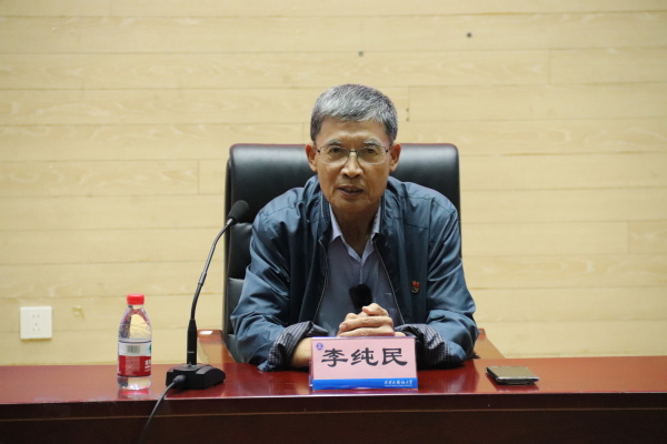 为弘扬社会主义核心价值观,加强和改进大学生思想政治教育工作,用榜样的先进事迹引领青年成长,9月25日,学校开展“信仰大讲堂”新生入学教育,邀请第九届全国道德模范、中交天津航道局有限公司退休干部李纯民同志,做“感恩时代,不负韶华,做个对社会有用的人”专题讲座。讲座由党委学生工作部部长焦宁主持,辅导员代表、“天津市中小学德育工作研究中心”中学教师、2025级新生代表参加活动。讲座开始前,校党委书记周红蕾、党委副书记胡志刚和李纯民同志进行交流。