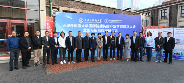 10月11日,天津外国语大学国际智能传播产业学院成立大会暨国际智能传播研讨会在马场道校区大学生活动中心举行。教育部新闻传播教学指导委员会、天津市委宣传部、天津市教育两委相关负责人,以及来自中央及天津市主流媒体单位、相关传媒类企业等三十余家合作单位的代表参会。