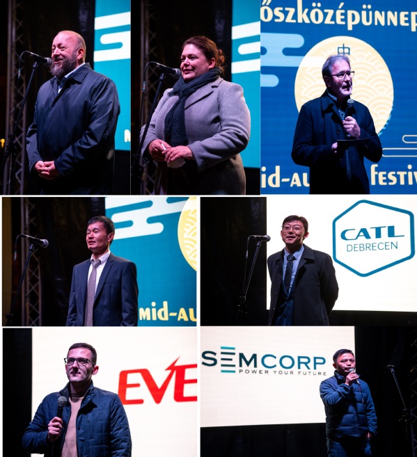 晚上七时,庆典仪式正式启动。德布勒森市副市长普斯卡什。伊斯特万博士、匈牙利德布勒森大学德国研究中心/OTT-HOME 国际文化交流中心主任德烈娅·霍瓦特博士, 华人代表林木伟先生、宁德时代(CATL)副总经理、上海恩捷(SEMCORP)总经理、亿维锂能(EVE Power)匈方经理和宝马公司总经理等嘉宾先后致辞,共叙中匈友谊与文化共情。