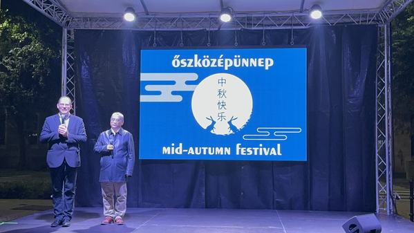 活动尾声,拉兹罗·埃里克·科瓦奇先生(Mr. László Erik Kovács)与崔显军博士共同登台,宣布本届中秋庆典圆满闭幕。