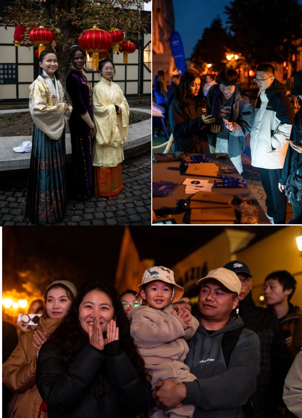 宁德时代等企业在现场设立展台,吸引众多市民驻足交流;华商们的各类小吃摊热气腾腾,还有闽南的“博饼游戏”饶有传统意趣。一名在德布勒森就读的中国留学生感慨:“看到祖国的企业与中国传统文化在这里被接受和喜爱,真的很自豪。”
