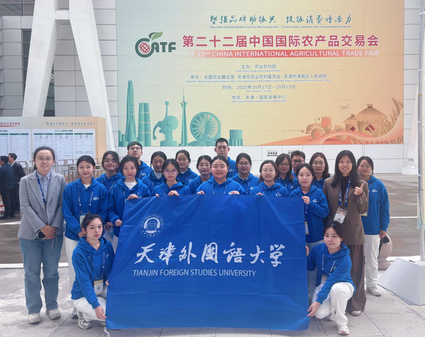 10月17日至19日,第二十二届中国国际农产品交易会(以下简称“农交会”)在天津成功举办,本届农交会秉承“展示成果、促进贸易、推动交流”宗旨,以“塑强品牌助振兴 提振消费增活力”为主题,吸引采购商和专业观众5万余人。为保障大会国际交流环节的顺畅进行,在团市委、市农委等相关单位指导下,天外精心选派了涵盖近10个专业的45名多语种志愿者,投身于外宾接待、国际展区翻译引导等关键岗位,以其卓越的语言能力和专业的服务精神,成为本届展会国际交流舞台上一道亮丽的风景线。