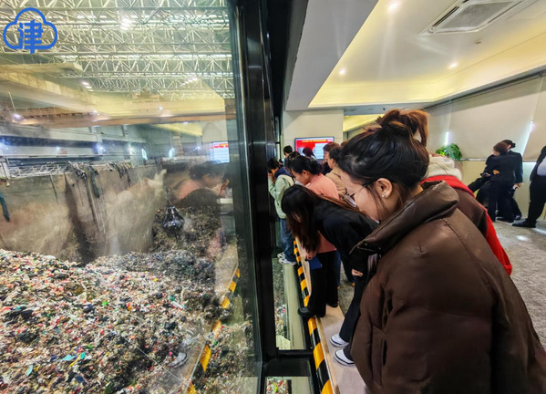 天津外国语大学滨海外事学院的师生代表赴光大环保能源公司开展实践,同学们认真聆听了思政老师的讲解并亲眼见证了现代生活垃圾“变废为宝”的全过程。巨大的机械臂精准抓取数吨垃圾投入焚烧炉,中央控制室内实时数据跃动闪烁,展示着垃圾从发酵、焚烧到能量转化的每个环节。同学们重点关注技术细节,仔细询问垃圾焚烧发电的工艺流程和环保指标,对“垃圾变身电能”的神奇过程表现出浓厚兴趣。