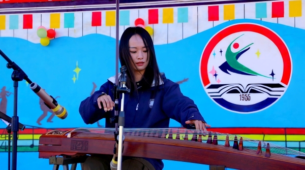 天津外国语大学支教团老师在演出古筝。(奴日曼古丽 摄)