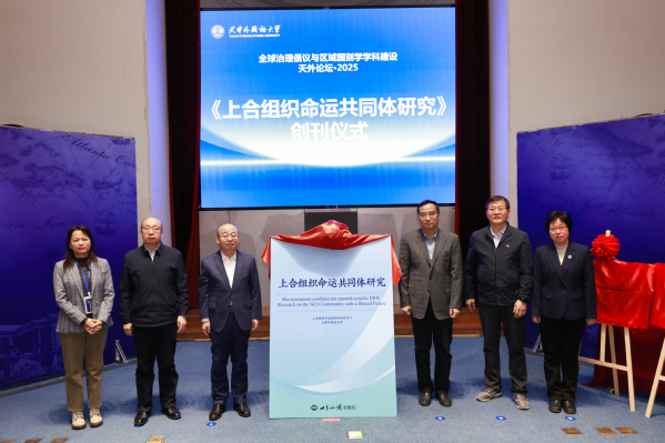 在践行全球治理倡议行动启动仪式上,天津市人民政府外事办公室党组书记、主任栾建章,天津市委宣传部副部长马波,天津市教育委员会副主任罗延安,天津市社会科学界联合会专职副主席袁世军,《世界知识》杂志社社长吴晓芳,天津外国语大学校长李迎迎共同见证《上合组织命运共同体研究》创刊。该刊将作为天外参与上合组织峰会的重要成果,旨在成为推动上合组织研究的权威学术平台。