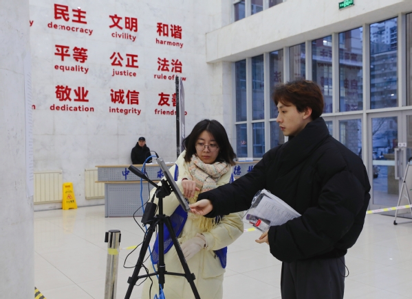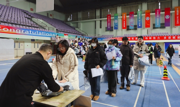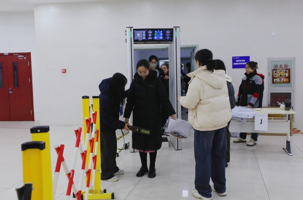 面对严寒天气,学校特别开放体育馆作为考生休息与存包区。馆内空调全程开启,温暖舒适,许多考生利用午间在此休整、复习。场馆合理设置进出通道,便于快速存取物品,避免聚集拥堵。学校还为轻装入场的考生开辟“快速通道”,有效缩短等待时间。