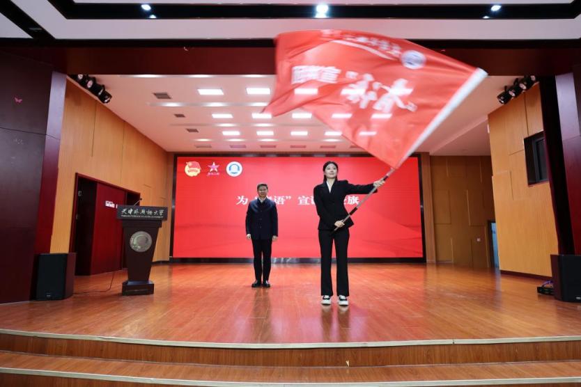会上,校党委副书记胡志刚为“青语”宣讲团授旗,校团委汇报了“青马工程”实施情况。