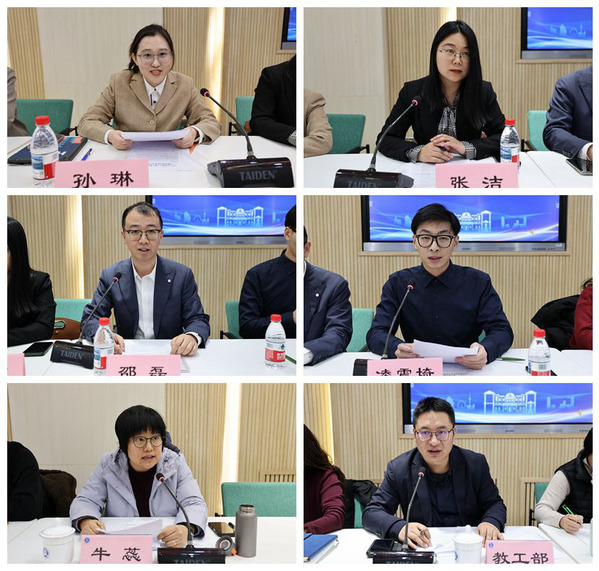 国际传媒学院教师、学校“求索青年人才·青年新锐”培养人选孙琳,欧洲语言文化学院教师、上合组织天津峰会翻译服务青年教师张洁,国际商学院教师邵磊、日语学院辅导员凌震琦四位教师作为新教工代表畅谈“职业初心与期待”“岗位认知与成长”“个人规划与发展”“学校发展建议与设想”等话题,展现了新一代天外人的责任与担当。