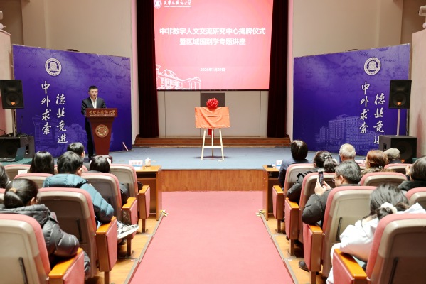 为深入服务国家“一带一路”倡议与中非合作战略,推动区域国别学学科创新发展,1月29日,天津外国语大学在钟楼报告厅举行中非数字人文交流研究中心揭牌仪式暨区域国别学专题讲座。中国延安精神研究会副会长、中国国际交流协会副会长、原中共中央对外联络部副部长、原驻埃塞俄比亚特命全权大使艾平,天津市人民政府外事办公室党组书记、主任栾建章,天津外国语大学党委书记、校长李迎迎,副校长朱鹏霄,副校长冯鹏出席活动。市外办代表,学校相关学院、职能部门负责人及教师代表参加活动。此次活动标志着天外在深化中非人文交流、探索“外语+数字”交叉学科创新方面迈出了关键一步。