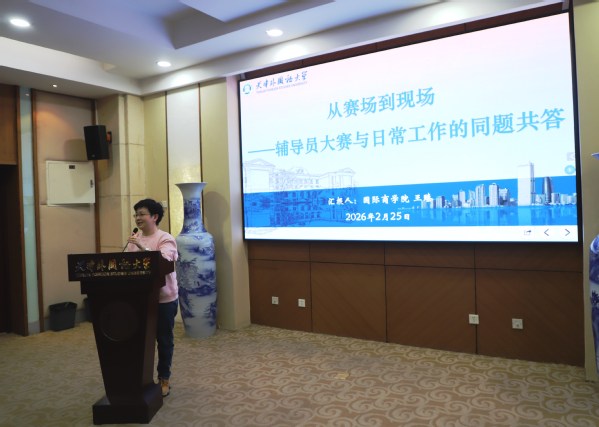 天津市最美高校辅导员、辅导员素质能力大赛一等奖获得者——国际商学院王臻以“从赛场到现场——辅导员大赛与日常工作的同题共答”为题,带来了一场精彩分享。她结合参赛经历,围绕基础知识测试、案例研讨、谈心谈话三个环节,与辅导员老师们共同审视日常工作中的“考题”与“答案”。她谈到,大赛是日常工作的集中体现,专业化不是经验的堆砌,而是在思考中将实践转化为可迁移的方法论;精准思政不是一句口号,而是在看见真实学生的基础上,让教育真正发生。王臻的分享既是对大赛经验的凝练复盘,更是对辅导员岗位使命的深刻回应。从赛场到现场,同题共答、知行合一。