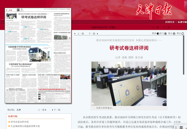 天津商业大学研究生处相关负责人说:“我校今年对网上评卷系统进行升级,提高了试卷识别清晰度,并改进评分偏离标准值监测功能,加强对各科目评卷进度和每名评卷教师评阅情况的实时跟踪监督。”