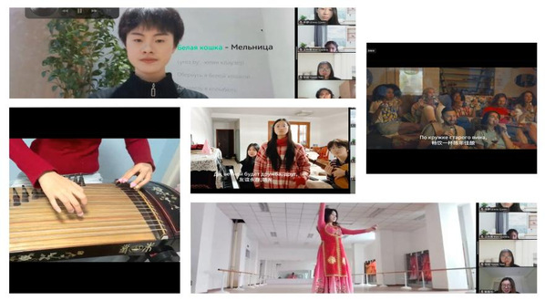 尤为亮眼的是“新年才艺荟萃”环节。在中国师生的精心组织下,七项形式多样的“创意礼物”通过屏幕在云端传递:从王美琪同学的深情歌曲《Я бы сказал тебе много хорошего》,到麦迪乃同学的动人舞蹈《恋》,从丁心语同学唤起怀旧情怀的《Старое доброе время》,到李秋雨同学指尖流淌出的古筝名曲《琵琶语》,再到解嘉怡同学演唱的经典俄罗斯民歌《Уральская рябинушка》,以及金美希同学的《Белая кошка》和李义恒同学活力四射的《ДаДаДа》。这些节目不仅展现了天津外国语大学学子卓越的艺术才华与语言能力,更传递了真挚的新年祝福。