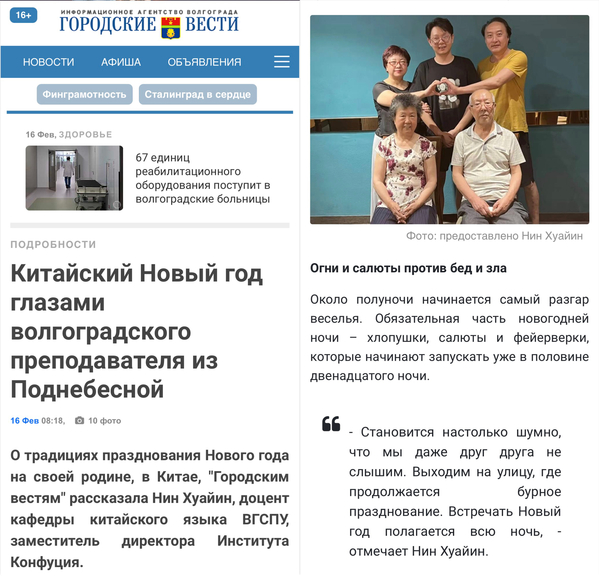 在《城市新闻报》的专访中,孔子学院院长宁怀颖以细腻的笔触、真切的亲历者视角,向俄罗斯读者娓娓解读中国春节的传统内涵与人文情怀。她坦言,春节是中国人心中最隆重、最具分量的传统节日,是刻在骨子里的家国情怀与团圆期盼——无论身在天涯海角,每到此时,人们总会跨越山海,奔赴家的方向。从腊月小年的启幕、家家户户的大扫除,到门上张贴的大红福字、春联,从年夜饭桌上寓意吉祥的各色菜肴,到除夕夜守岁的灯火通明,再到长辈赠予晚辈的压岁钱与美好期许,宁怀颖一一详解其中讲究与深意,更特别阐释了红色在中国文化中象征吉祥、喜庆、平安的美好寓意,让遥远的东方节日变得具体可感,让俄罗斯读者对中国春节有了更为鲜活、深刻的理解。