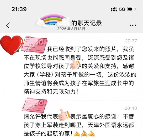 入伍学子家长发来的感谢信