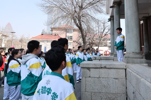 在预科大楼(现为天津外国语大学行政楼)和校园长廊,天津市实验中学初、高中学生代表接力讲述了顾方舟在校求学的经历,以及他“舍己幼,为人之幼”,率先让自己孩子试服疫苗、带领团队攻坚克难研制“糖丸”的感人故事。一个个生动的细节,让在场师生深刻体悟到以家国情怀、科学担当、无私奉献为核心的“方舟精神”。在钟楼前,同学们结合历史建筑,探讨“方舟精神”的时代价值,思考新时代青少年的使命担当。