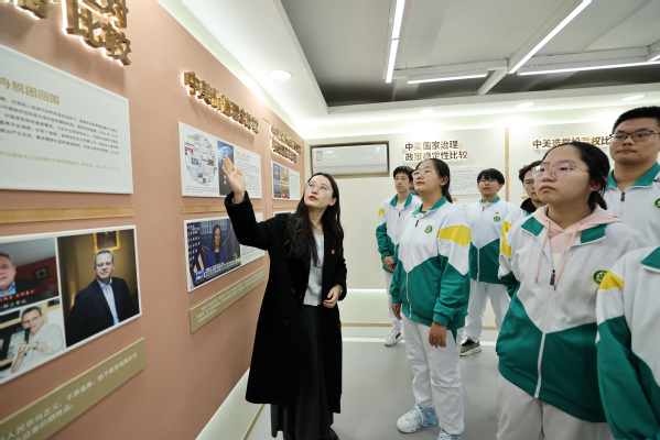作为此次活动的重要环节,中外制度比较思政课重点实验室的实践教学为学生们提供了思辨的广阔平台。依托实验室100个“中外制度比较”鲜活案例,高中组学生在“中外社会建设比较”实验室开展专项实践研学;初中组学生与天外青马学员代表携手,通过实景化案例剖析、互动式问答研讨、自主探索式学习,直观感受中外制度差异,深刻认识中国制度优势,进一步坚定“四个自信”。