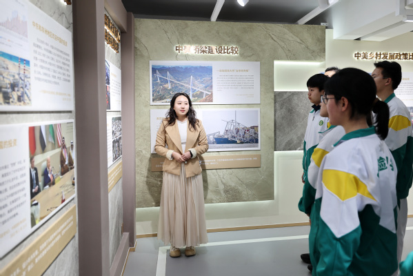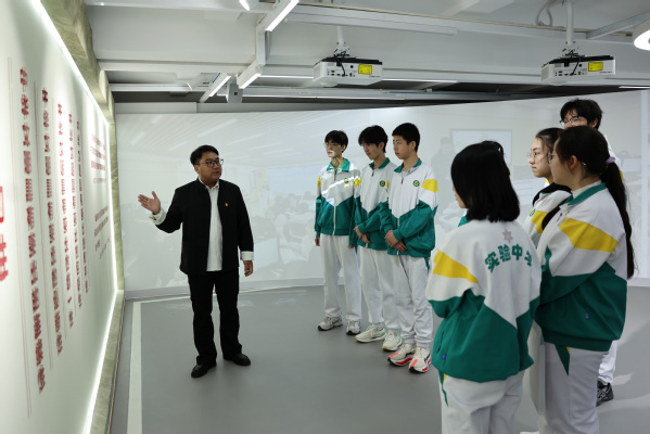 “在场馆中实地听讲解,并与实验室里的沉浸式体验相结合,我学到了许多课本上学不到的知识,让我对中国制度优势有了更深的理解,也为今后的学习积累了鲜活丰富的素材。”参与活动的高中生王政睿边听边记,收获满满。同学们还围绕“从顾方舟事迹,看青年担当”“从中外比较,感悟中国制度优势”等主题分组交流,分享研学体会,将青春感悟撰写成寄语,张贴在实验室的留言板上。“站在顾方舟学长学习过的地方,听着他的故事,我真正懂得了什么是‘把国家装在心里’。”参与活动的学生李子裕表示,通过沉浸式学习,自己对“方舟精神”的理解更加深刻,对中国特色社会主义制度的认识更加具象,未来将把个人成长与国家发展紧密相连,努力成长为堪当民族复兴重任的时代新人。