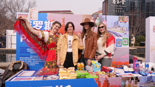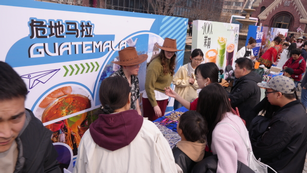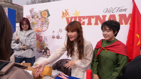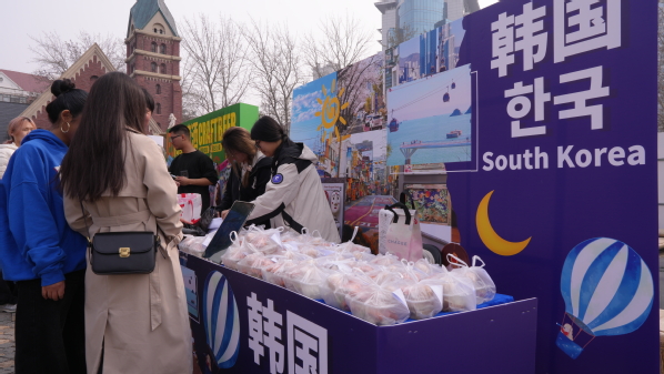 同期举办的中西文化市集上,来自俄罗斯、危地马拉、越南、也门、韩国等国家的天外留学生身着本国传统服饰,精心布置特色展位,带来独具风情的文创手作与特色美食。市民沉浸式体验多国文化,互动交流热烈,成为活动中一道亮眼的国际风景线,生动彰显了天外鲜明的国际化特色与校地共建的深厚人文温度。
