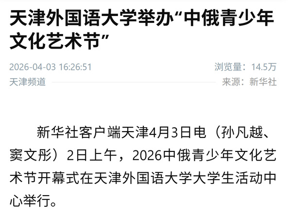 2026—2027年是“中俄教育年”,今年恰逢中俄战略协作伙伴关系建立30周年与《中俄睦邻友好合作条约》签署25周年。天津外国语大学依托俄语学科优势与对俄合作基础,结合“汉语桥”俄罗斯青少年访华团来华交流契机,与俄罗斯“小鹰”全俄儿童中心共同策划举办本次文化艺术节,通过艺术表达与语言交流相融合的形式,集中展现中俄青少年交流成果,打造人文交流新亮点。