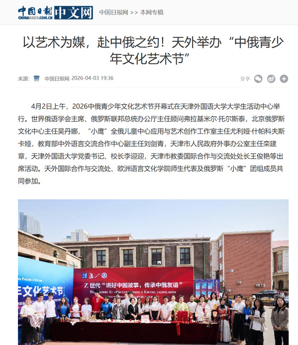 2026—2027年是“中俄教育年”,恰逢中俄战略协作伙伴关系建立30周年与《中俄睦邻友好条约》签署25周年。在此背景下,天津外国语大学依托俄语学科优势与对俄合作基础,结合“汉语桥”俄罗斯青少年访华团来华交流契机,与俄罗斯“小鹰”全俄儿童中心共同策划举办本次文化艺术节,通过艺术表达与语言交流相融合的形式,集中展现中俄青少年交流成果,打造人文交流新亮点。
