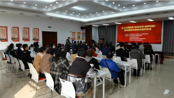在全体与会代表的见证下,四方代表共同签署水上公园街“联创未来-逐梦职航”就业服务共建协议,标志着四方就业共建合作正式启动。