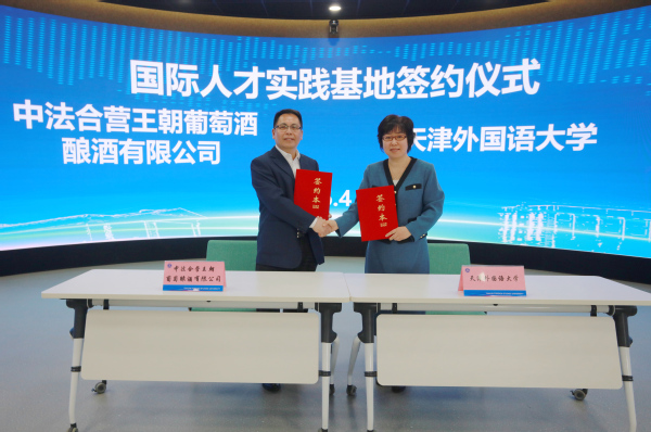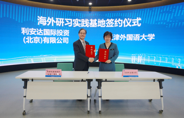 会议期间举行2026国际营地启动仪式,营地将深度引入国际课程、开展外籍专家前沿讲座、设立多元国际交流项目,与国际化企业共建海外实践基地和国际人才基地,同时以“高校+社区”的创新形式,打造“家门口的国际课堂”,让高校国际化教育资源惠及更多市民,赋能城市国际化发展。国际营地启动仪式上,天津外国语大学校长李迎迎分别与天津助企“走出去”服务联盟理事长、利安达国际投资(北京)有限公司董事局主席黄锦辉,中法合营王朝葡萄酿酒有限公司党委书记、总经理何崇富签约,共建海外研习实践基地与国际人才实践基地,推动校企国际化人才共育。与会嘉宾还实地考察天津城市语言环境、国际人才实践基地等,各高校国际交流处人员围绕联盟共建、资源共享、项目共推等议题充分交流研讨。