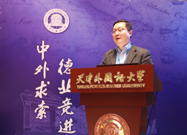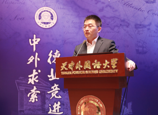 天津外国语大学党委常委、副校长朱鹏霄系统展示天外在中外译介、外事服务、多域交流、城市外宣、智库研究五大高地建设成果,依托中央文献翻译研究基地、上合组织命运共同体研究中心等平台,以语言服务与智力支撑服务国家外交与天津社会主义现代化大都市建设。