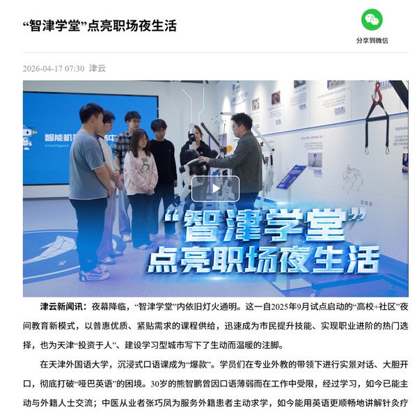 夜幕降临,“智津学堂”内依旧灯火通明。这一自2025年9月试点启动的“高校+社区”夜间教育新模式,以普惠优质、紧贴需求的课程供给,迅速成为市民提升技能、实现职业进阶的热门选择,也为天津“投资于人”、建设学习型城市写下了生动而温暖的注脚。
