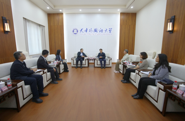 近日,辽宁科技学院党委副书记宋明凯一行到访天津外国语大学。校党委副书记胡志刚会见来访人员,双方就开展两校合作进行交流。天外招生就业处、国际合作与交流处、图书馆、校办公室、通识教育学院、国际教育学院等单位负责同志参加会见座谈。